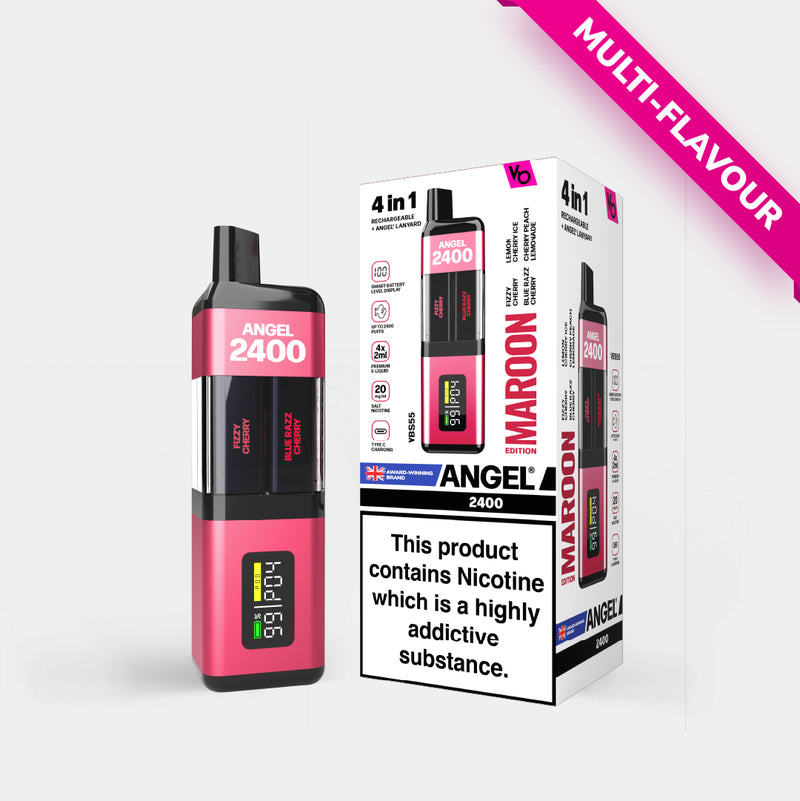 The Angel 4-in-1 offers the ultimate flexibility with four flavors in a single device, allowing you to easily switch between tastes with a simple twist. Backed by four times more battery power, Angel 4-in-1 delivers up to 2400 puffs on a single charge, ensuring a longer-lasting and more satisfying vaping experience.