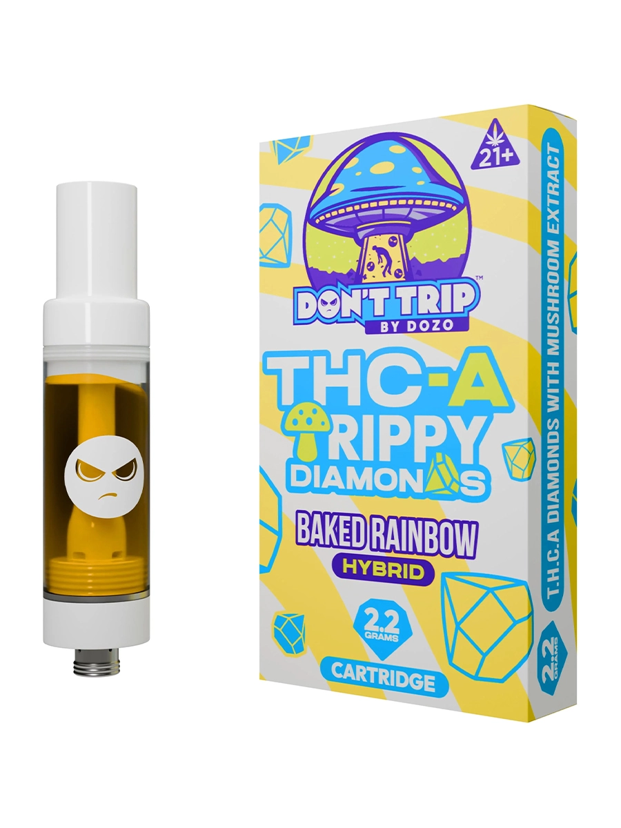 Introducing Baked Rainbow Don’t Trip by Dozo THC-A Trippy Diamonds Cartridge 2.2G.