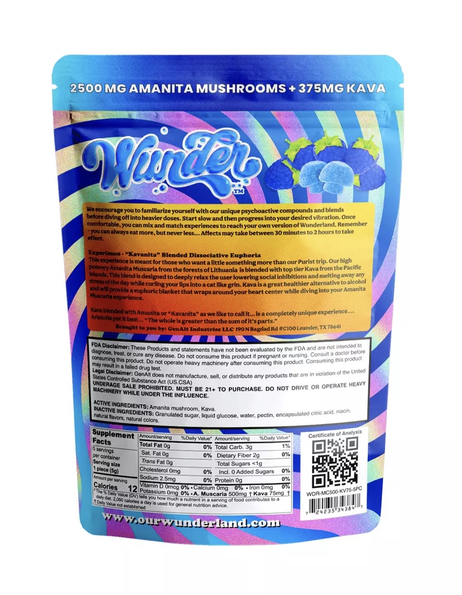 Blue Razz Wunder Amanita Muscaria Mushroom + Kava Gummies 2500mg