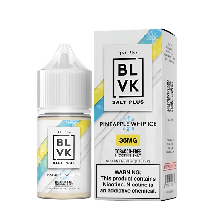 BLVK Salt Plus Flavors: Apple Candy Ice Grape Ice Mana Ice Melon Ice Pineapple Whip Ice Purple Grape Ice Red Orange Ice Sour Apple Ice Watermelon Ice