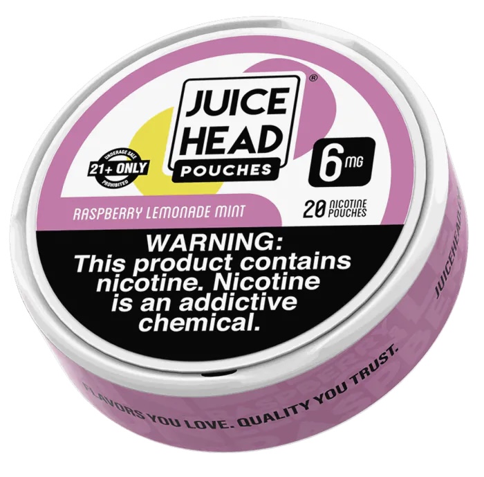Juice Head Raspberry Lemonade Mint 6mg nicotine pouches provide a tobacco-free nicotine option with a blend of raspberry, lemonade, and mint. Made with Zero Tobacco Nicotine® (ZTN), these pouches contain synthetic nicotine, offering an alternative for adult users. Each slim pouch delivers 6mg of nicotine, making it a regular-strength choice. Designed for ease of use, these pouches are smoke-free and spit-free, making them convenient for use anytime, anywhere. Each can contains 20 pouches, available for purchase individually or in multipacks of 5, 10, 25, or 50 through Nicokick. For those who prefer a stronger option, this flavor is also available in a 12mg strength.
