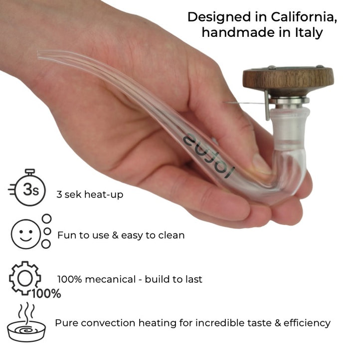 Also included: the Lotus Gentleman Pipe – a sleek, two-piece wooden pipe with a standard 14mm joint, perfectly matched to the Lotus and even freestanding.