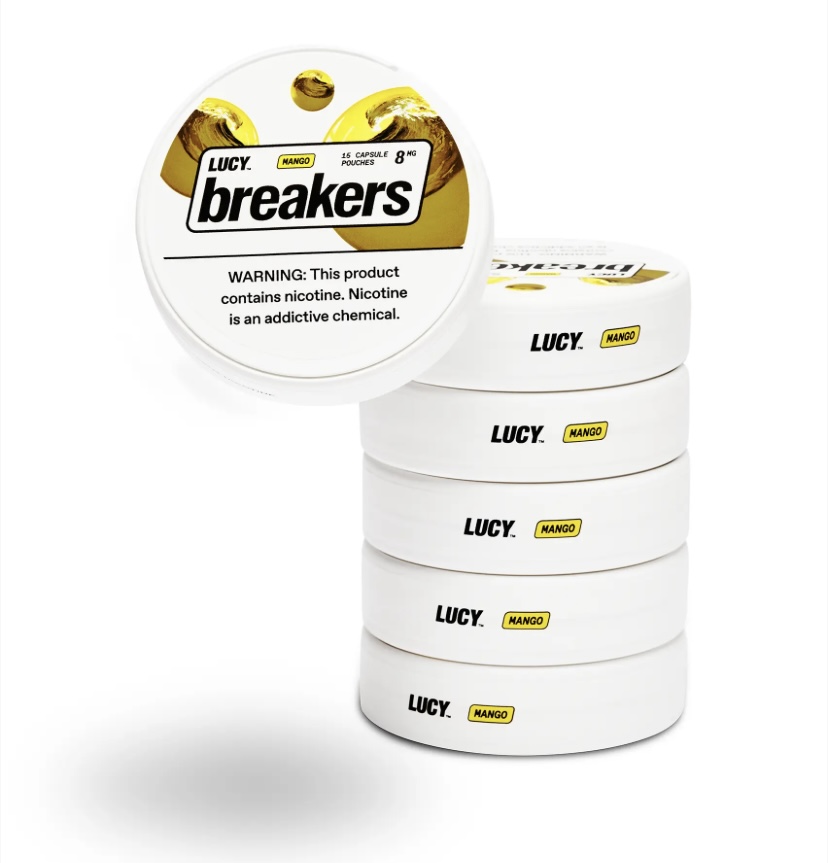 Lucy Breakers Mango 8mg nicotine pouches offer a sweet mango nectar flavor, providing 8mg of nicotine per pouch. These slim, tobacco-free pouches are made with synthetic nicotine, allowing you to use them anytime, anywhere, without the need to spit. Designed for comfort, they feature a soft texture and high moisture content, ensuring a quick nicotine release. Each pouch is equipped with a breaker capsule that bursts with long-lasting flavor and moistens the pouch for a soft, enjoyable feel.
