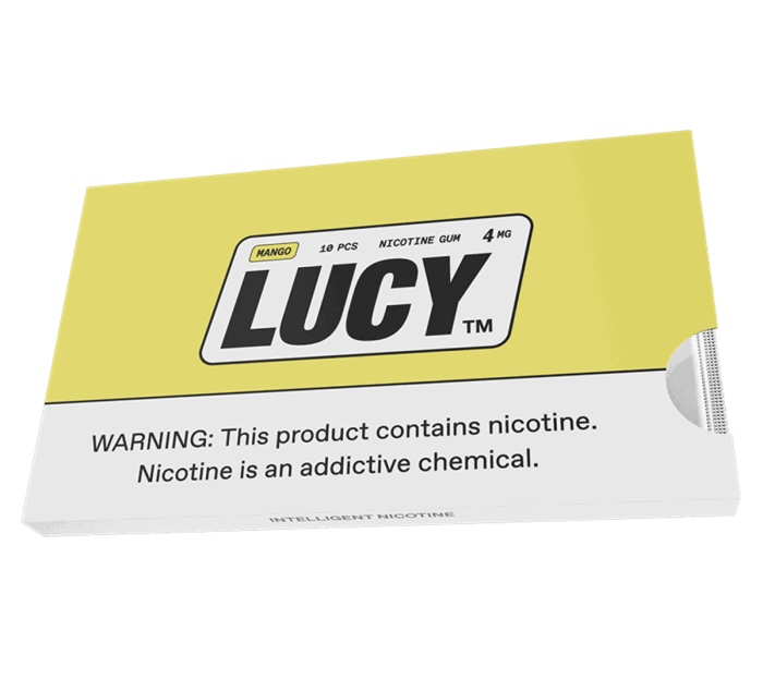| Ingredient List | pharmaceutical grade nicotine, gum base, sodium carbonate, calcium carbonate, sodium bicarbonate, acacia, carnauba wax, talc, food-grade sweeteners (xylitol, maltitol, sorbitol, acesulfame potassium, sucralose, and saccharin), food-grade flavors, and food-grade colors. Lucy is gluten-free, sugar-free, soy-free, and aspartame-free |