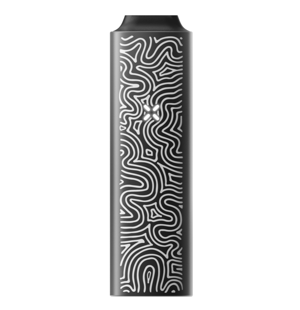 The latest PAX collaboration, the “PAX Artist Series,” features three designs: “Flow,” “Expand,” and “Vibe,” created by artists Daniel Shoykhet (DOT) and Gio (Giorgi Macharashvili). Specializing in optical art, both artists use geometric patterns to create mesmerizing, hallucinatory effects that can have a calming, meditative impact.