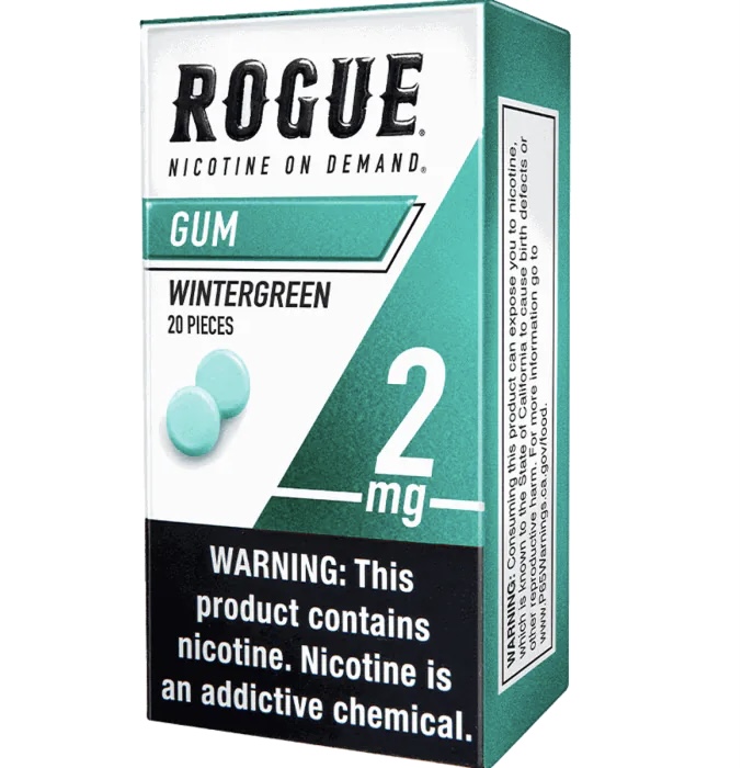 Rogue Wintergreen 2mg nicotine gum is tobacco leaf-free and delivers the taste of wintergreen. This sugar-free, stain-free, and spit-free nicotine gum serves as an alternative to traditional smokeless tobacco products. Each pack contains 20 pieces, with a nicotine strength of 2mg per piece. Each piece provides up to 30 minutes of flavor release and comes in a compact package that can be taken anywhere.