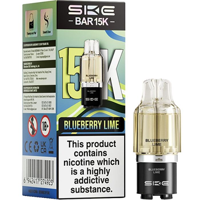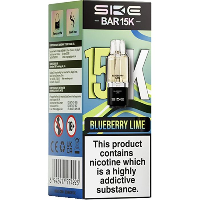 Each SKE Bar 15K pod pack comes with a 2ml prefilled pod & 10ml refill for a total of 12ml of SKE Crystal nic salt e-liquid, for use with the SKE Bar 15K pod vape kit. This allows for up to 15,000 puffs before the pod & refill will need to be replaced.