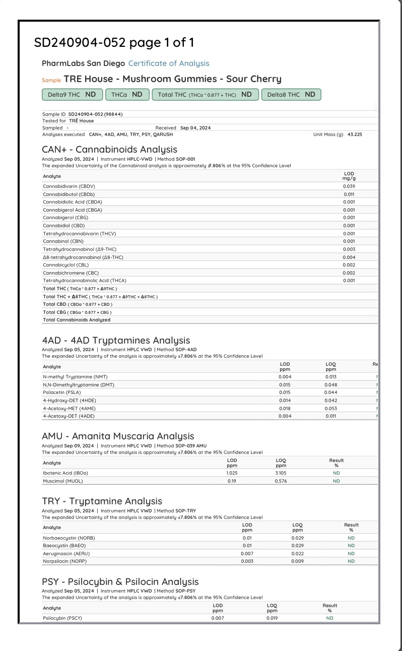 Introducing the Sour Cherry Tre House Magic Mushroom Gummies—your gateway to a flavorful and euphoric experience. These gummies combine the tangy taste of sour cherries with a proprietary blend of nootropic and adaptogenic mushrooms, offering a unique journey for both the mind and body.