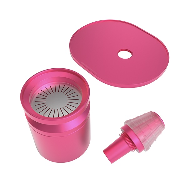 - Compatible with dry herbs and concentrates, the device is made of metal.