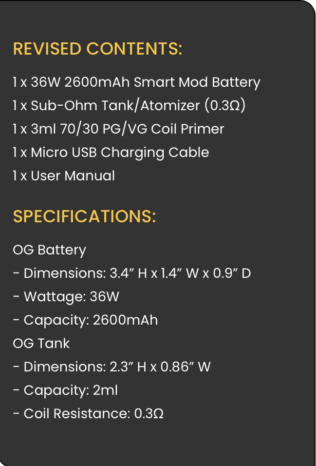 The Honey Stick utilizes a large 2ml capacity top-fill tank with a built-in mesh safety screen, that’s perfect for use with CO2 and CBD oils. SUB-OHM OIL MOD Designed to be more powerful and reliable than average wax pens, the Honey Stick vaporizer is an advanced wax mod compatible with atomizer resistance levels between 0.3Ω and 3.0Ω. Combine sub-ohm resistance capability with a maximum power output of 36 watts, and you’ve got the ability to rip some of the biggest vapor clouds you’ve ever experienced with a wax pen vape. The Honey Stick operates the same as a mod designed for e-juice and is even compatible with e-juice. However, its primary function is that of a high-powered wax mod compatible with CO2 extracts and THC/CBD infused e-liquid.