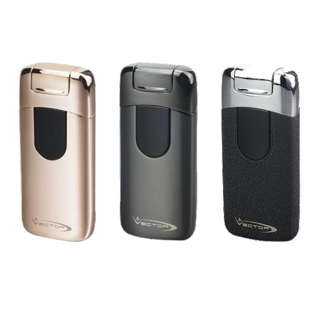 The Vector Electron is a double flame electric lighter that will never need a fuel refill – because there is no fuel to speak of! Simply charge the Electron via the supplied USB cable and enjoy hours of use. The dotted battery indicator on the front will tell you when you reach 75%, 50%, and 25% charge, and its super-light and ergonomic design makes it easy to take with you anywhere.