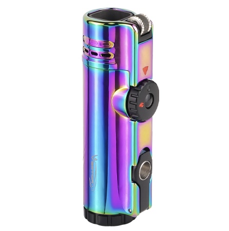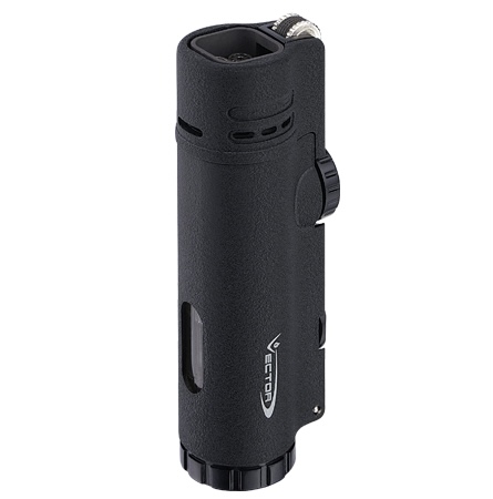 Introducing Vector Warcraft, the ultimate wind resistant jet torch. With 4 merging flames and a built-in cigar punch, this luxury torch is perfect for high-altitude smoking at 12K feet. Its sleek design, measuring at W 1.17″ x L 0.86″ x H 3.44″, makes it a must-have for any cigar connoisseur.