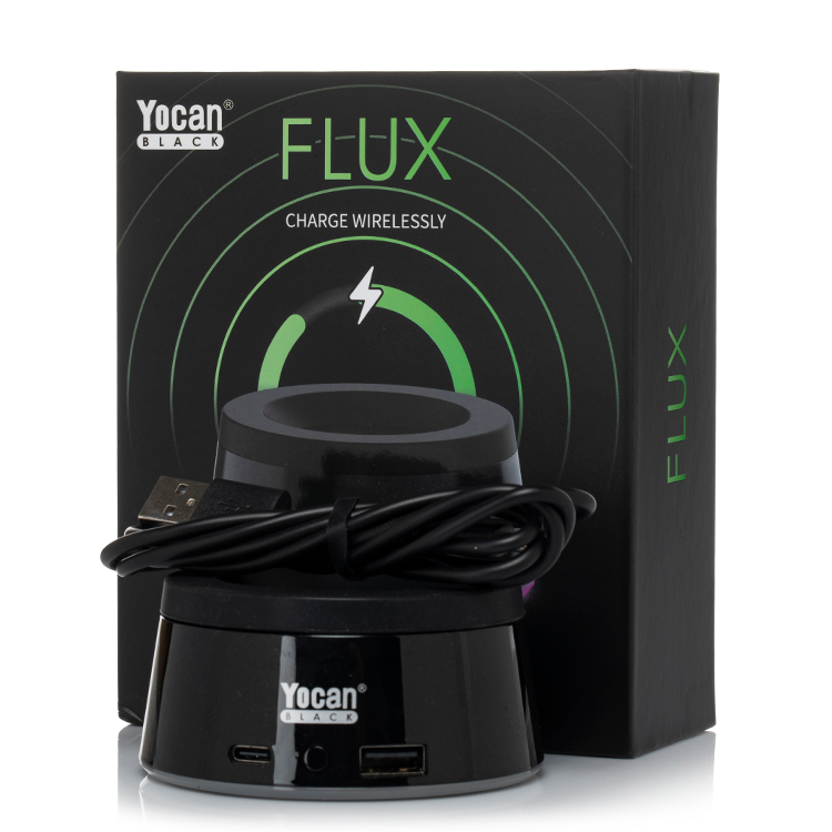 Utilize the Yocan Black Celestial Flux Wireless Charger, offering a 5200mAh battery, wireless charging capability, and includes Type-C or USB-A charging. With effortless function, the Yocan Black FLUX Charger is perfect for those that love to dab, providing ample power to quickly charge your Yocan Black Celestial E-Rig. In addition, the wireless charging feature can support a variety of other devices such as cellphones, smart watches, and even wireless earbuds. Equipped with a USB-A and USB-C port, the Flux Charger can accept and deliver power at a moment’s notice, outputting up to 10W for fast charging capabilities.